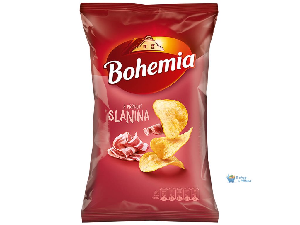 Bohemia Chips Slanina jsou vyrobeny z pečlivě vybraných brambor, které jsou nakrájeny na tenké plátky a šetrně smaženy dozlatova, aby si zachovaly svou typickou křupavost a přirozenou bramborovou chuť. Každý lupínek je rovnoměrně ochucen slaninovým kořením, které dodává chipsům výraznou, plnou a lehce kouřovou chuť.