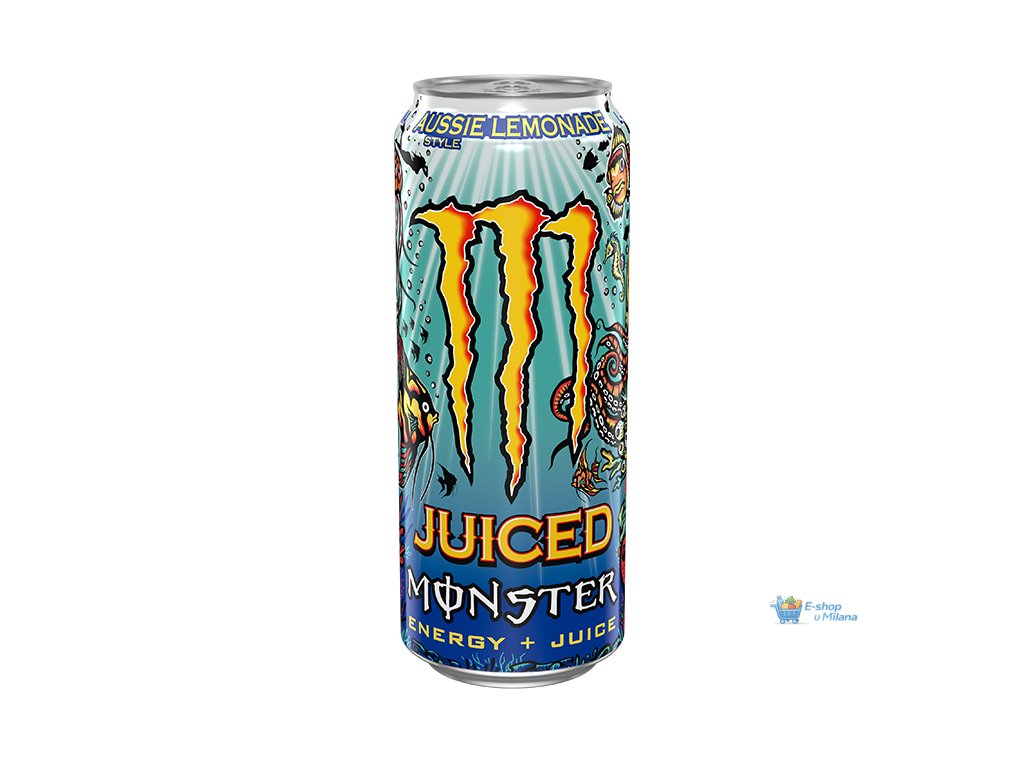 Monster Energy Juiced Aussie Lemon 500 ml – energetický nápoj s chutí australského citronu. Osvěžující citrusová chuť, kofein a vitamíny skupiny B pro rychlé povzbuzení.